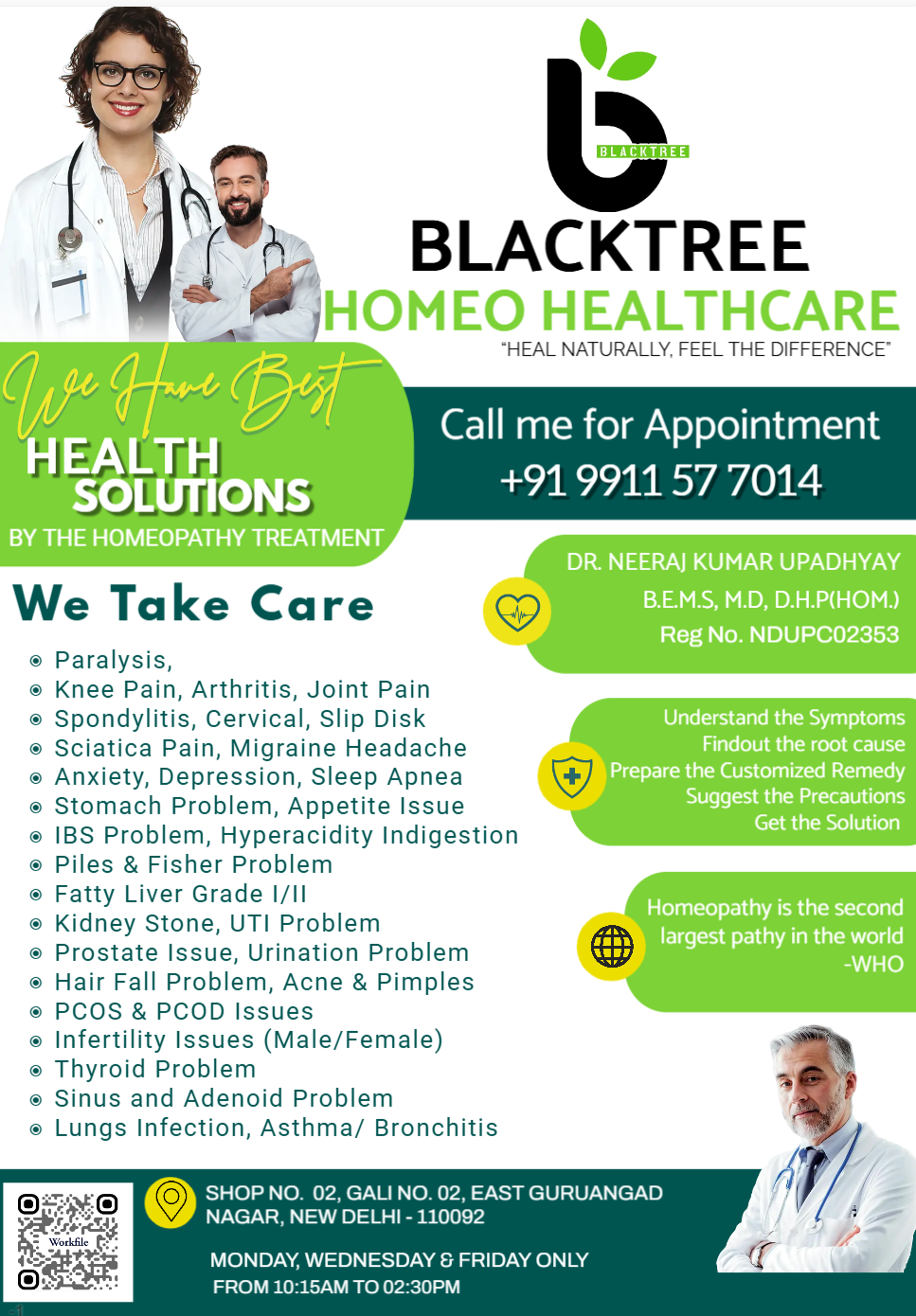 ๐ฟ Blacktree Homeo Healthcare ๐ฟ Heal naturally with expert homeopathic treatment by Dr. Neeraj Upadhyay for chronic diseases. Clinics in Gr. Noida & Delhi, specializing in pain relief, skin issues, digestive disorders, and mental well-being. ๐ฒ Book an appointment now!