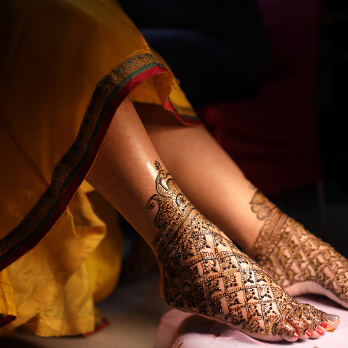 Intricate and personalized designs for the bride’s hands and feet—perfect for weddings and special moments.