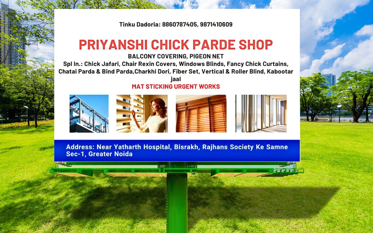 Priyanshi Chick Parde Shop β Your one-stop solution for balcony covering & pigeon nets! π‘π¦ Specializing in Chick Jafari, Window Blinds, Fiber Sets, and Designer Mats for a stylish & functional space. ποΈβ¨ We offer customized solutions , including Charkhi Dori, Vertical & Roller Blinds, and Kabootar Jaal. π πͺ Located near Yatharth Hospital, Bisrakh , serving Greater Noida with quality & affordability! ππΌ