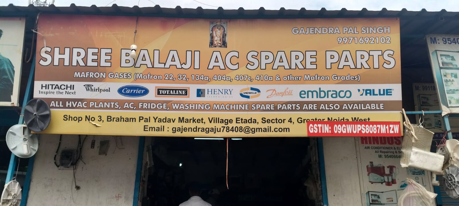 π§βοΈ Shree Balaji AC Spare Parts Your trusted hub for Mafron gases (22, 32, 134a, 404a, 407c, 410a & more) and genuine spare parts for AC, fridge, washing machines & HVAC plants. β Authorised distributor of top brands: Hitachi, Whirlpool, Carrier, Totaline, Henry, UniWeld, Danfoss, Embraco, Value. π Serving Greater Noida West with quality products, reliable service & expert support.